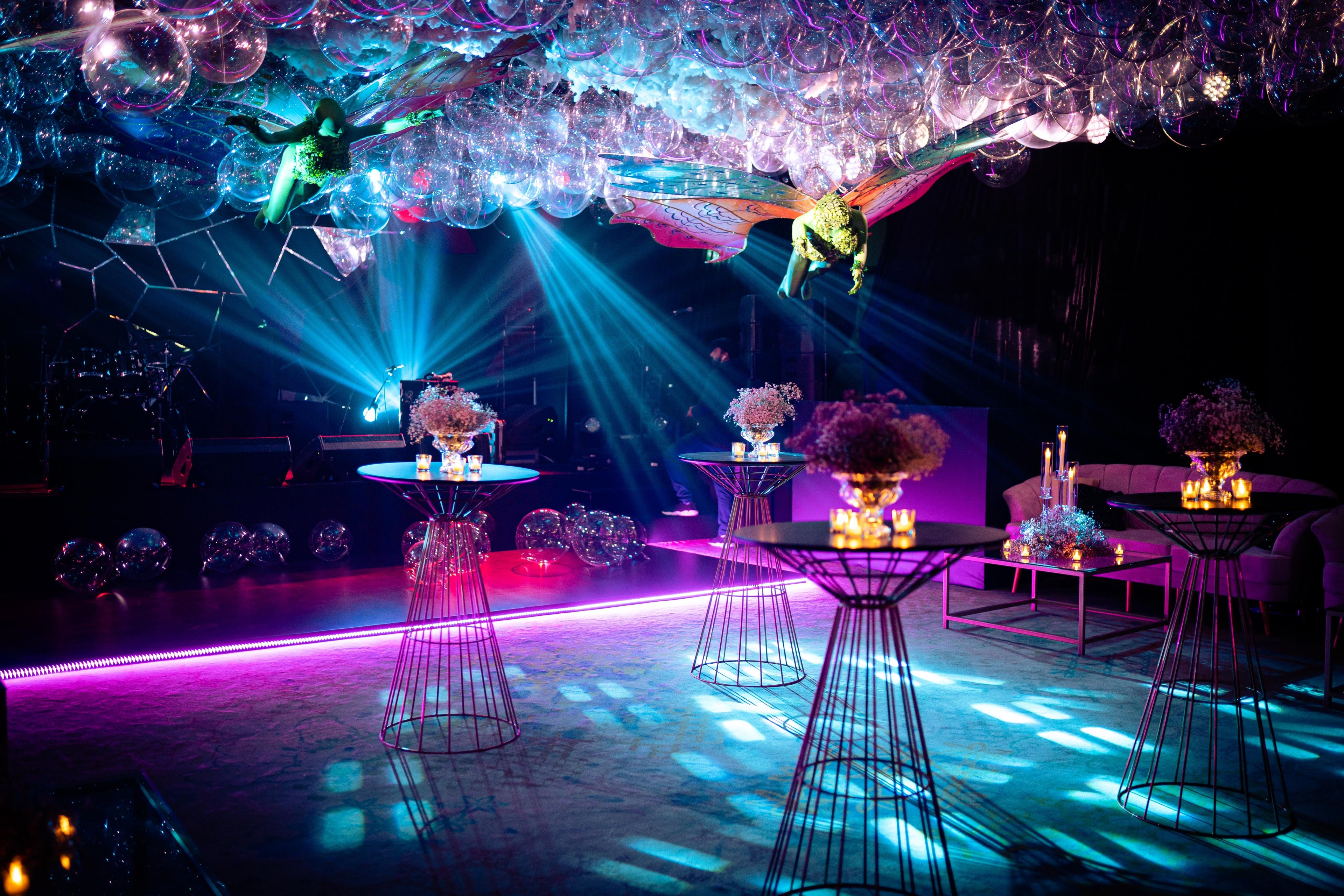 Hundreds of rainbow toned flowers grouped together to create a gorgeous floral story complete with teacups for this old fashioned English tea party installed at the one and only Just...